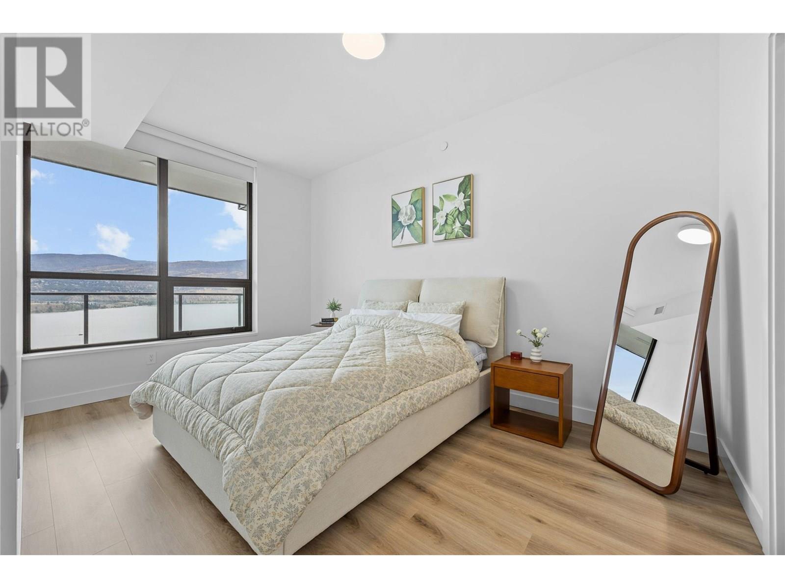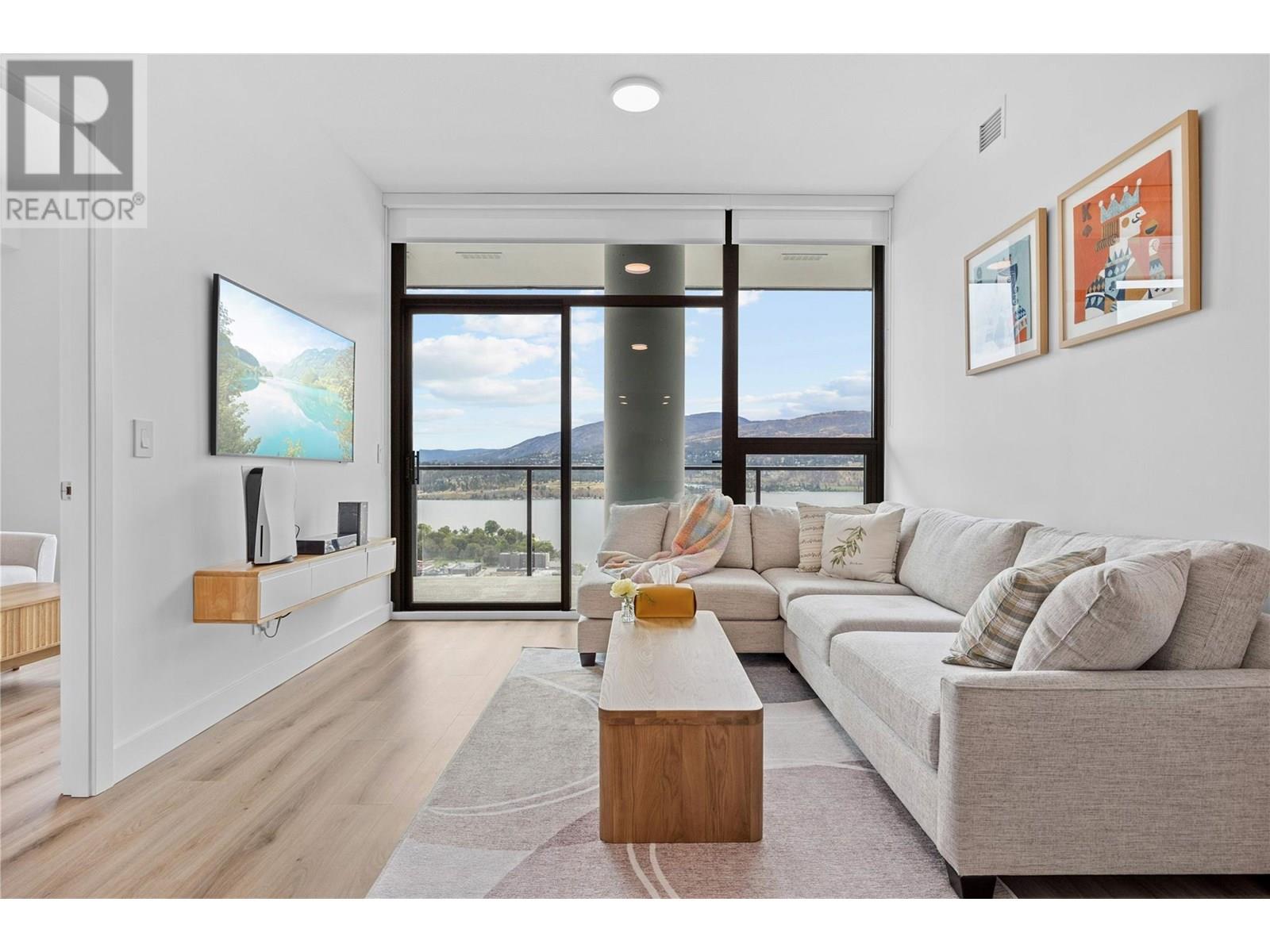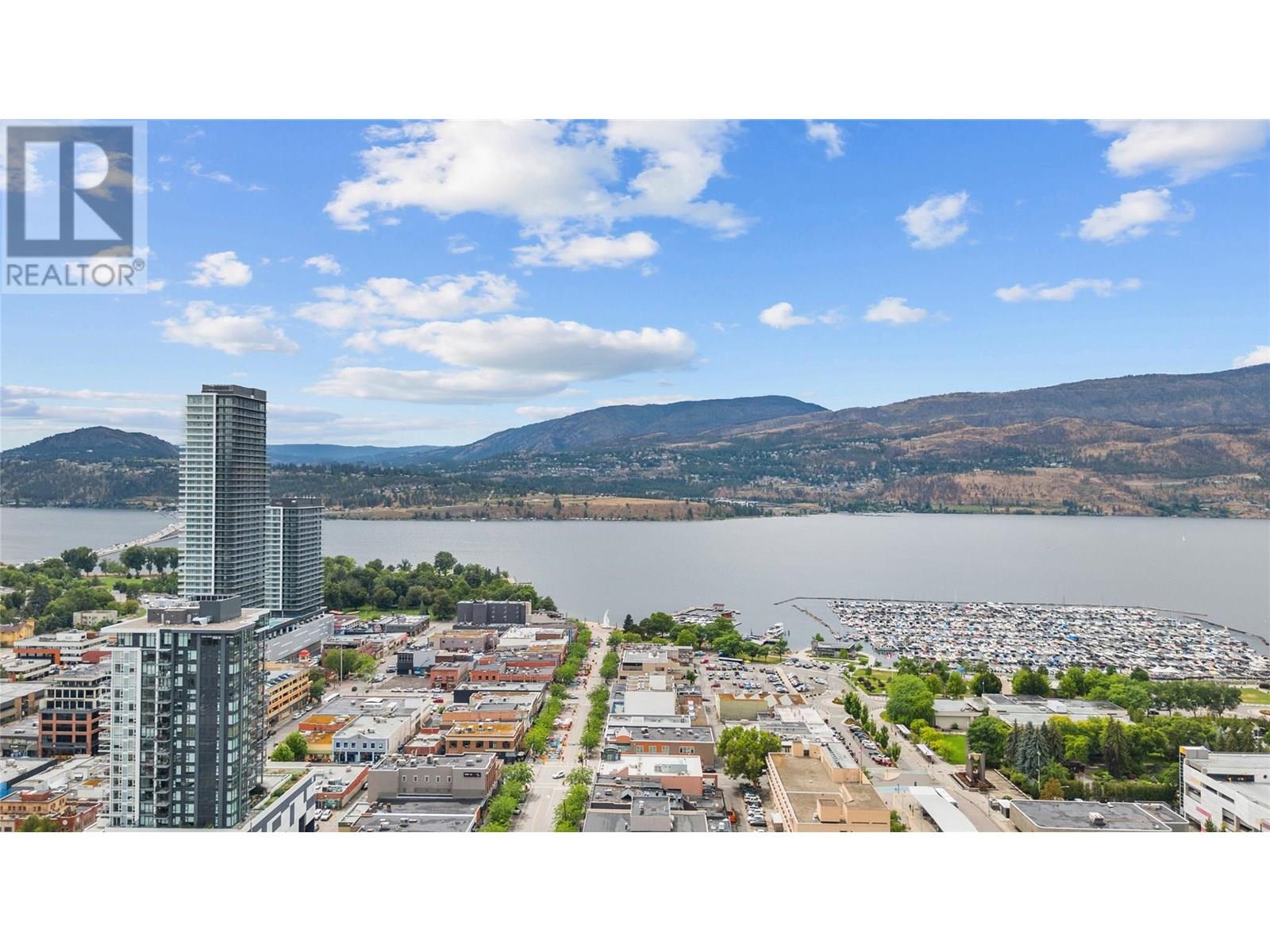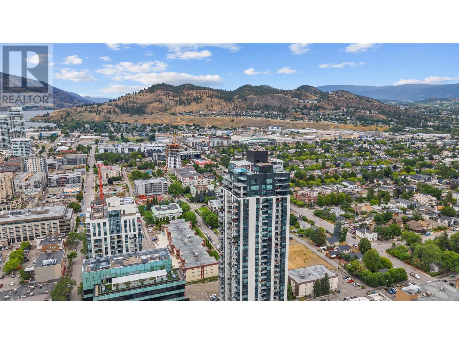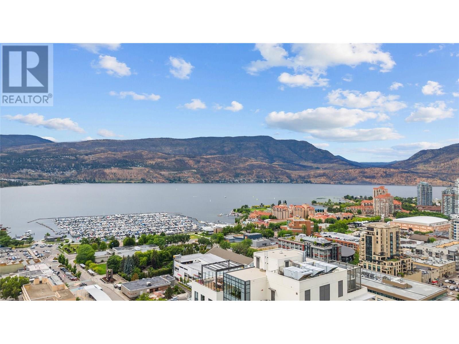This spectacular 2 bed, 2 bath sub penthouse comes fully furnished and showcases sweeping 180 degree lake and city views that will leave you speechless. Located in a pet friendly building just four blocks from the beach and mere steps to Kelowna’s award winning restaurants, shops, entertainment, and Prospera Place arena. This is the ultimate Okanagan address. Step inside and discover a stylish, open concept layout with smart upgrades throughout, including luxury vinyl plank flooring and custom closet organizers in both bedrooms. Every piece of furniture and decor is included at a value close to $20,000 making this home truly turnkey, whether you're moving in or adding to your investment portfolio. And the amenities? Simply next level. Enjoy Kelowna’s finest rooftop pool and hot tub with panoramic views, plus outdoor BBQs, fire tables, lounge areas, a community garden, bocce court, secure bike storage, co-working space, and business centre. Whether you're searching for a full time residence, luxury vacation home, or a high performing rental, this sub penthouse delivers value, location, and lifestyle. (id:4069)