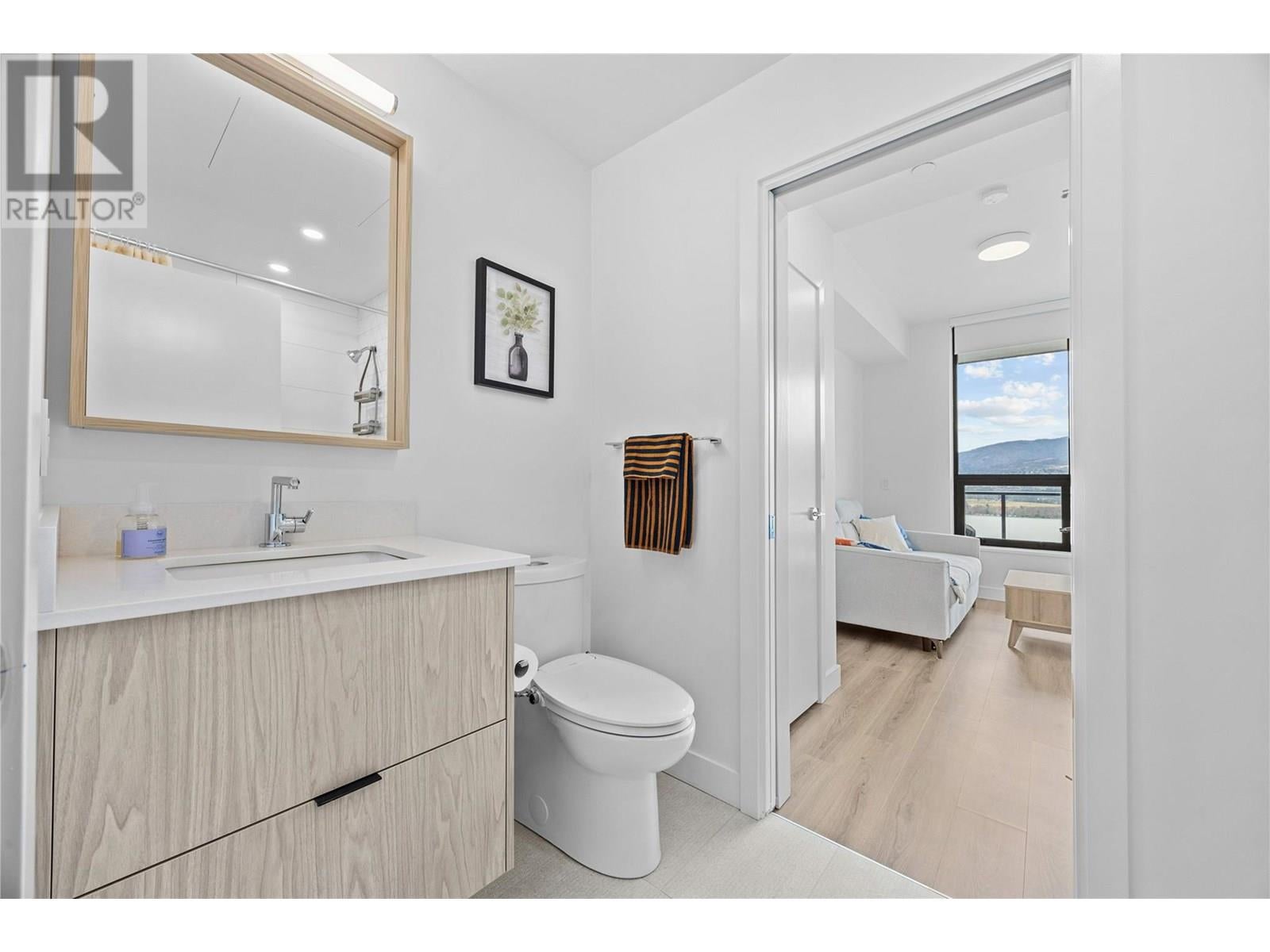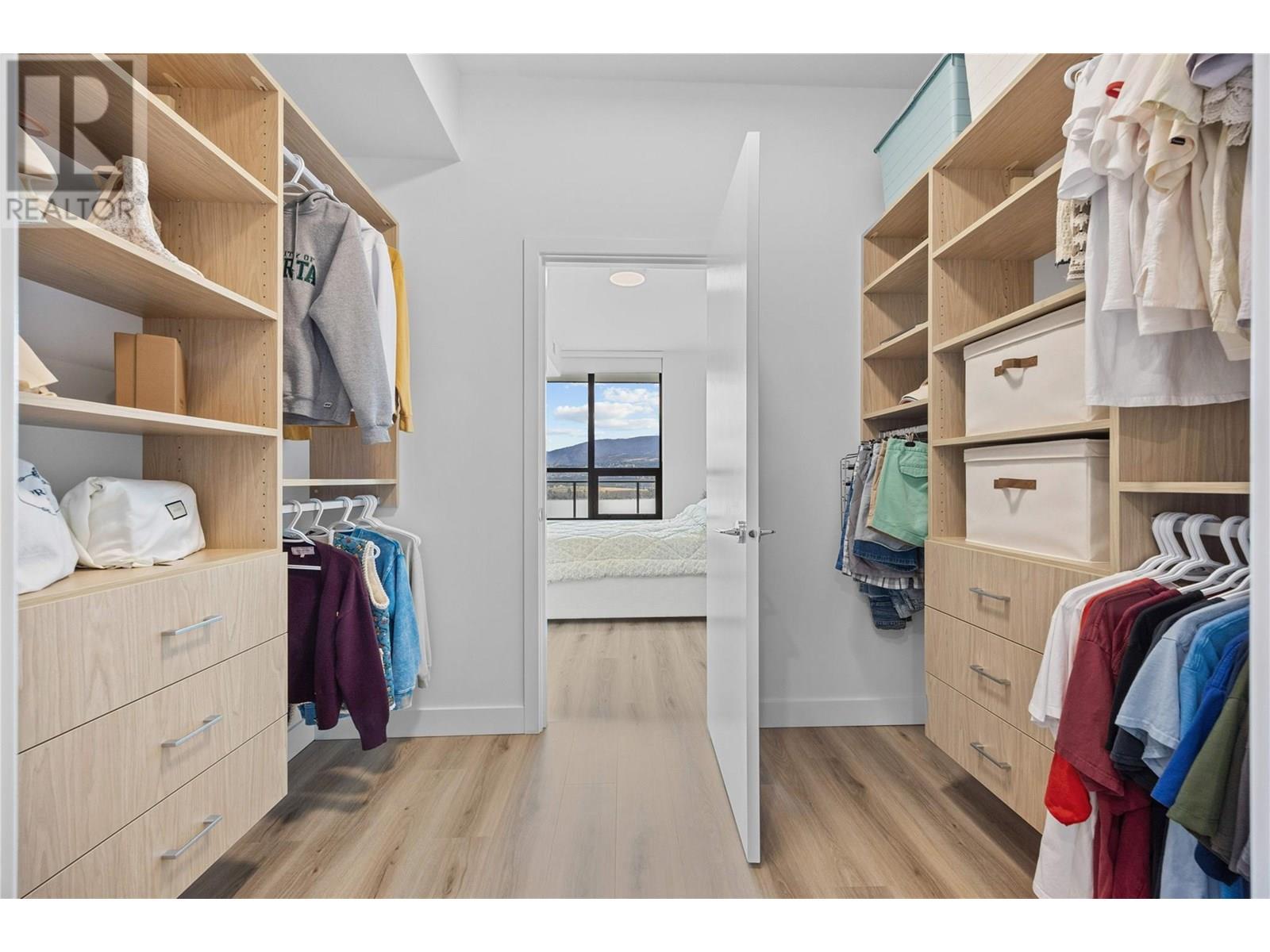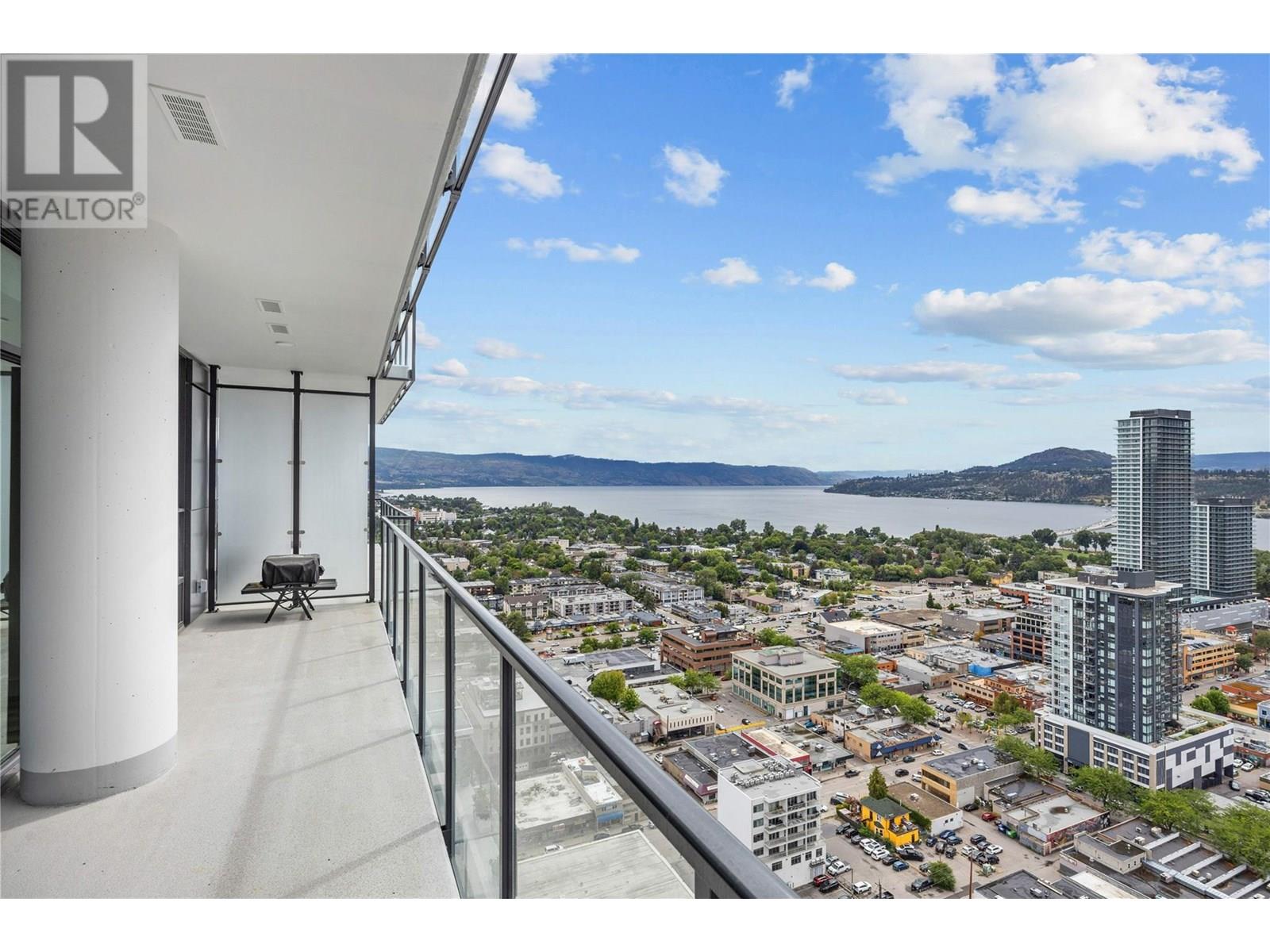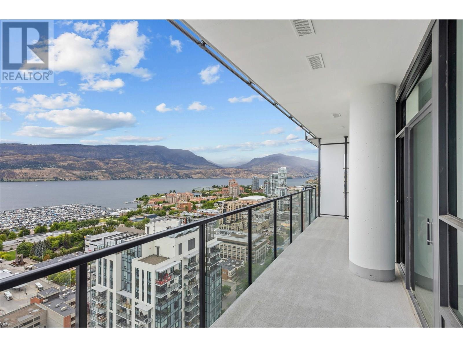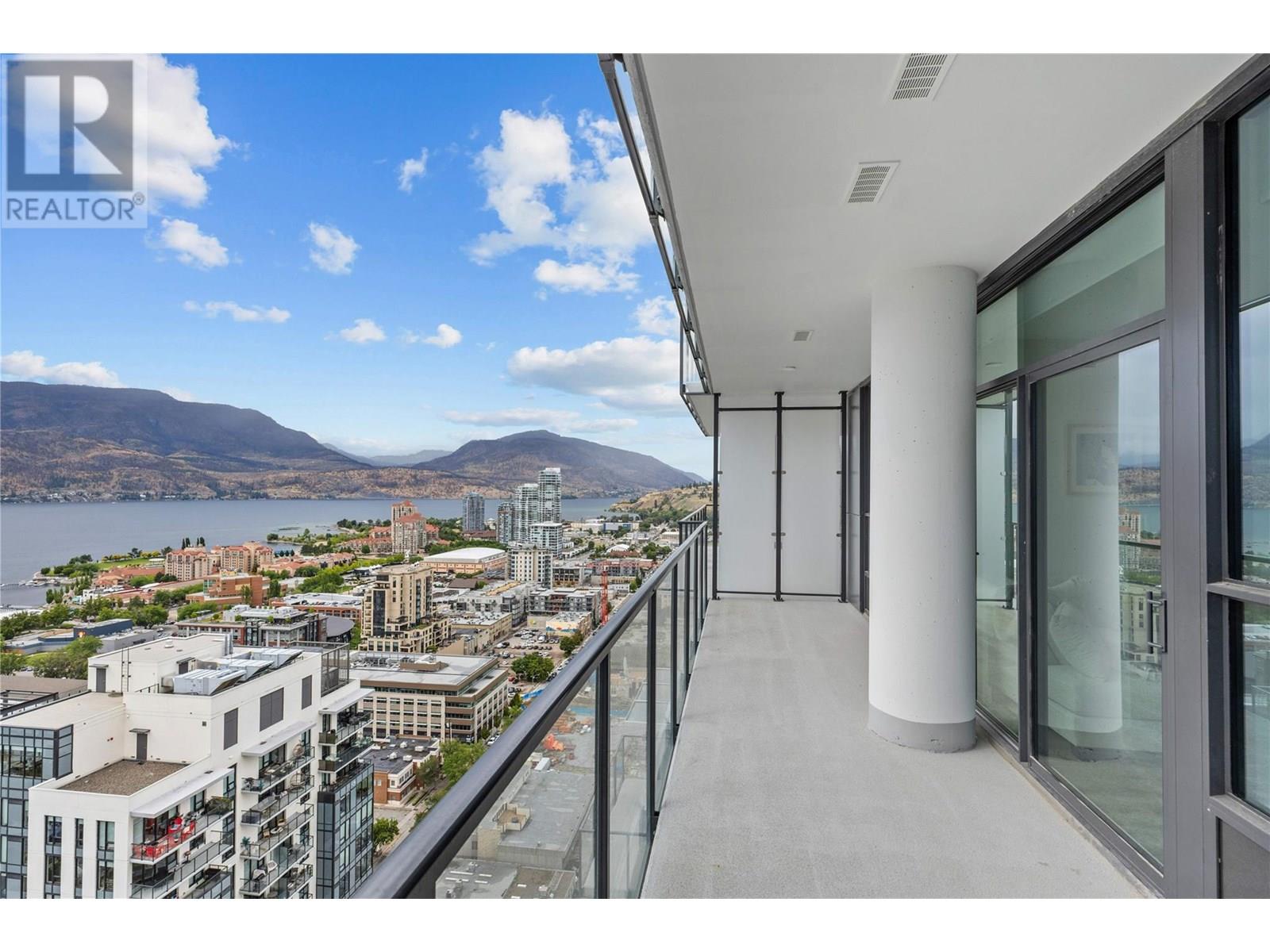 This spectacular 2 bed, 2 bath sub penthouse comes fully furnished and showcases sweeping 180 degree lake and city views that will leave you speechless. Located in a pet friendly building just four blocks from the beach and mere steps to Kelowna’s award winning restaurants, shops, entertainment, and Prospera Place arena. This is the ultimate Okanagan address. Step inside and discover a stylish, open concept layout with smart upgrades throughout, including luxury vinyl plank flooring and custom closet organizers in both bedrooms. Every piece of furniture and decor is included at a value close to $20,000 making this home truly turnkey, whether you're moving in or adding to your investment portfolio. And the amenities? Simply next level. Enjoy Kelowna’s finest rooftop pool and hot tub with panoramic views, plus outdoor BBQs, fire tables, lounge areas, a community garden, bocce court, secure bike storage, co-working space, and business centre. Whether you're searching for a full time residence, luxury vacation home, or a high performing rental, this sub penthouse delivers value, location, and lifestyle. (id:4069)